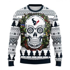 NFL Houston Texans Skull Flower Ugly Christmas Fleece Sweater