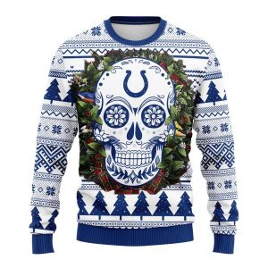 NFL Indianapolis Colts Skull Flower Ugly Christmas Fleece Sweater