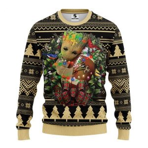 NFL New Orleans Saints Groot Hug Ugly Christmas Fleece Sweater