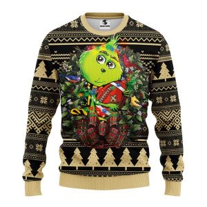 NFL New Orleans Saints Grinch Hug Ugly Christmas Fleece Sweater