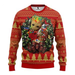 NFL San Francisco 49ers Groot Hug Ugly Christmas Fleece Sweater