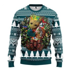NFL Philadelphia Eagles Groot Hug Ugly Christmas Fleece Sweater