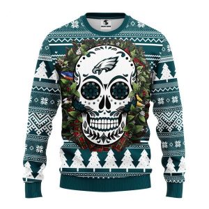 NFL Philadelphia Eagles Skull Flower Ugly Christmas Fleece Sweater