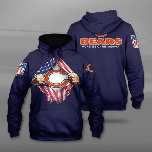 Men / Women Chicago Bears 3D Flag Hoodie, NFL Chicago Bears Monsters of The Midway Hoodie