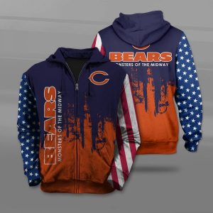 Men / Women Chicago Bears 3D Flag Zipper Hoodie, NFL Chicago Bears Monsters of The Midway Zipper Hoodie