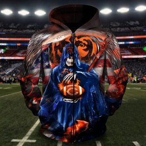 Men / Women Chicago Bears 3D Death Skull Hoodie, Chicago Bears Hoodie, NFL Chicago Bears Apparel