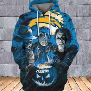 Horror Los Angeles Chargers All Over Print – Los Angeles Chargers 3D Hoodie – Los Angeles Chargers With Jason Voorhees, Freddy Krueger, Michael Myers Hoodie