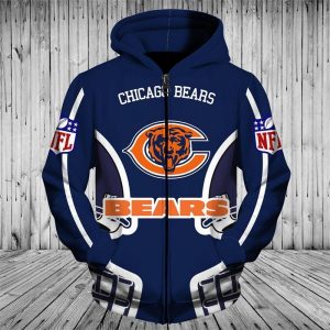 Men / Women Chicago Bears 3D Zipper Hoodie, Chicago Bears Zipper Hoodie, NFL Chicago Bears Apparel