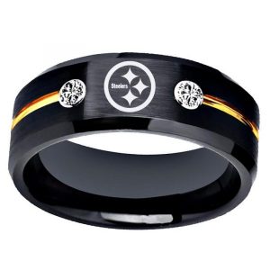 Pittsburgh Steelers Ring – Golden Groove Design with Stone Accents (Full box ring)