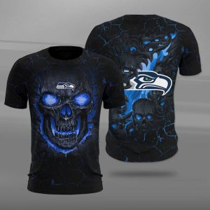 Men / Women Seattle Seahawks 3D Skull T-shirt, NFL Seattle Seahawks Apparel