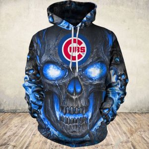 Men / Women Chicago Cubs Hello Darkness My Old Friend 3D Skull Hoodie, Hoodie for Chicago Cubs Fans, MLB Chicago Cubs Apparel