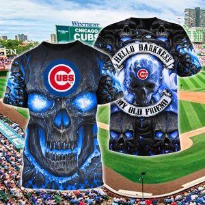 Men / Women Chicago Cubs Hello Darkness My Old Friend 3D Skull T shirt, T shirt for Chicago Cubs Fans, MLB Chicago Cubs Apparel