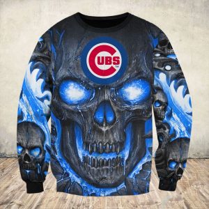 Men / Women Chicago Cubs Hello Darkness My Old Friend 3D Skull Sweatshirt, Sweatshirt for Chicago Cubs Fans, MLB Chicago Cubs Apparel