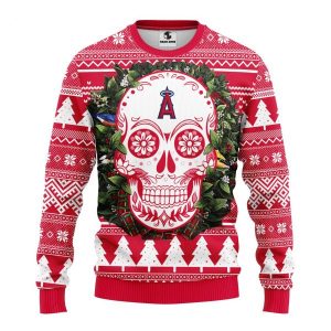 MLB Los Angeles Angels Skull Flower Ugly Christmas Fleece Sweater