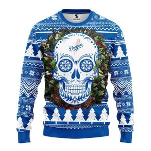 MLB Los Angeles Dodgers Skull Flower Ugly Christmas Fleece Sweater