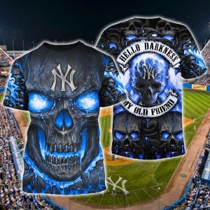 Men / Women New York Yankees Hello Darkness My Old Friend 3D Skull T shirt, T shirt for Yankees Fans, MLB New York Yankees Apparel