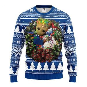 MLB Texas Rangers Groot Hug Ugly Christmas Fleece Sweater