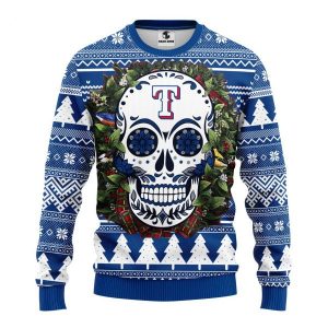 MLB Texas Rangers Skull Flower Ugly Christmas Fleece Sweater