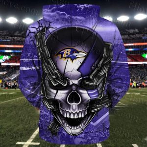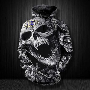 Men / Women Baltimore Ravens 3D Skull Hoodie, Baltimore Ravens Hoodie, NFL Baltimore Ravens Apparel
