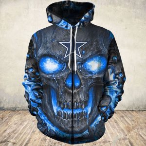 Men / Women Dallas Cowboys Hello Darkness My Old Friend 3D Skull Zipper Hoodie, Zipper Hoodie for Dallas Cowboys Fans, NFL Dallas Cowboys Apparel