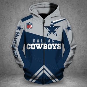 Men / Women Dallas Cowboys 3D Zipper Hoodie, Dallas Cowboys Zipper Hoodie, NFL Dallas Cowboys Apparel