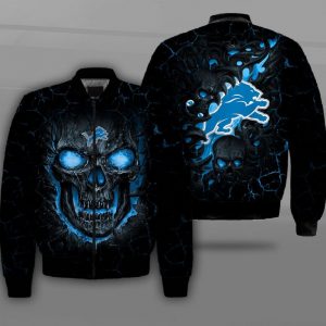 Detroit Lions 3D Skull Bomber Jacket, NFL Detroit Lions Apparel, Bomber Jacket for Lions Fans