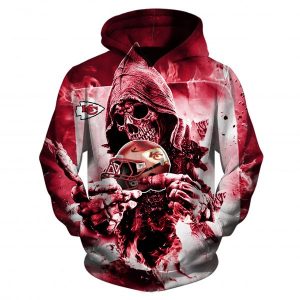 Men / Women Kansas City Chiefs 3D Death Skull Hoodie, Kansas City Chiefs Hoodie, NFL Kansas City Chiefs Apparel