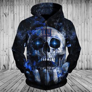 Men / Women New York Giants 3D Skull Zipper Hoodie, New York Giants Zipper Hoodie, NFL New York Giants Apparel
