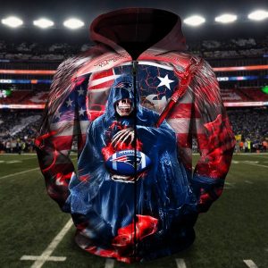 Men / Women New England Patriots 3D Death Skull Zipper Hoodie, New England Patriots Zipper Hoodie, NFL New England Patriots Apparel