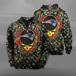 Men / Women New England Patriots 3D Skull Flower Zipper Hoodie, NFL New England Patriots Apparel