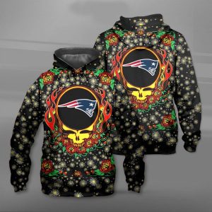 Men / Women New England Patriots 3D Skull Flower Hoodie, NFL New England Patriots Apparel