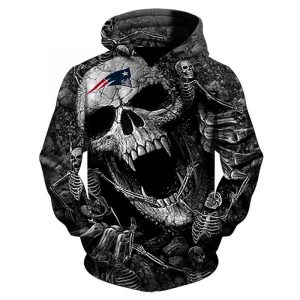 Men / Women New England Patriots 3D Skull Hoodie, New England Patriots Hoodie, NFL New England Patriots Apparel