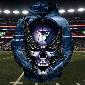 Men / Women New England Patriots 3D Skull Zipper Hoodie, New England Patriots Zipper Hoodie, NFL New England Patriots Apparel