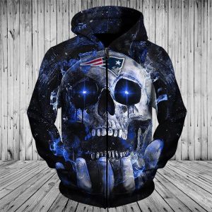 Men / Women New England Patriots 3D Skull Zipper Hoodie, New England Patriots Zipper Hoodie, NFL New England Patriots Apparel
