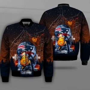 New England Patriots 3D Horror Bomber Jacket, NFL New England Patriots Apparel, Bomber Jacket for Patriots Fans