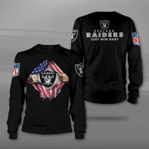 Men / Women Oakland Raiders 3D Flag T-shirt, Oakland Raiders Just Win Baby T-shirt, NFL Oakland Raiders Apparel
