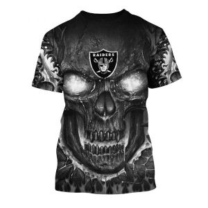 Men / Women Oakland Raiders Hello Darkness My Old Friend 3D Skull T-shirt, T-shirt for Oakland Raiders Fans, NFL Oakland Raiders Apparel