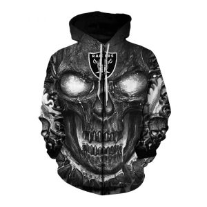 Men / Women Oakland Raiders Hello Darkness My Old Friend 3D Skull Zipper Hoodie, Zipper Hoodie for Oakland Raiders Fans, NFL Oakland Raiders Apparel