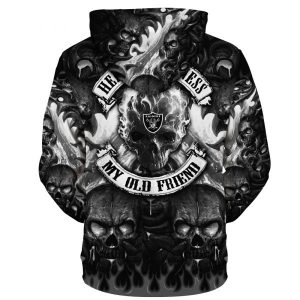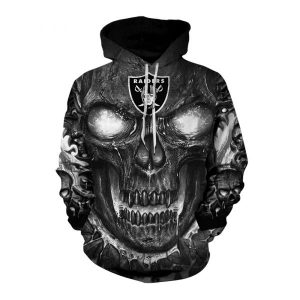 Men / Women Oakland Raiders Hello Darkness My Old Friend 3D Skull Hoodie, Hoodie for Oakland Raiders Fans, NFL Oakland Raiders Apparel