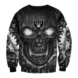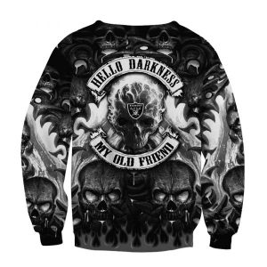 Men / Women Oakland Raiders Hello Darkness My Old Friend 3D Skull Sweatshirt, Sweatshirt for Oakland Raiders Fans, NFL Oakland Raiders Apparel