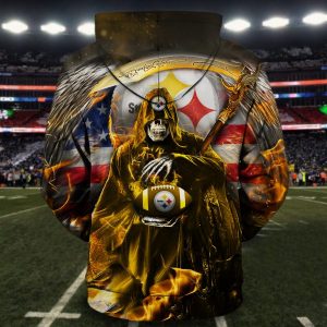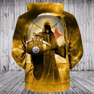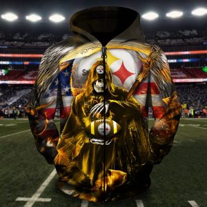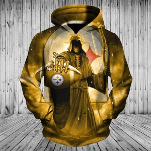Men / Women Pittsburgh Steelers 3D Death Skull Hoodie, Pittsburgh Steelers Hoodie, NFL Pittsburgh Steelers Apparel