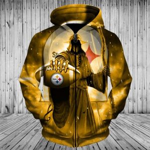 Men / Women Pittsburgh Steelers 3D Death Skull Zipper Hoodie, Pittsburgh Steelers Zipper Hoodie, NFL Pittsburgh Steelers Apparel