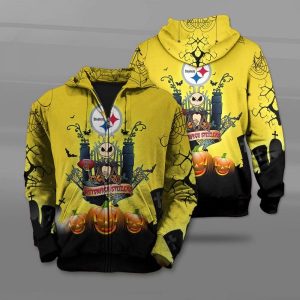 Men / Women Pittsburgh Steelers The Nightmare Before Christmas Jack Skellington 3D Zipper Hoodie, NFL Pittsburgh Steelers Apparel