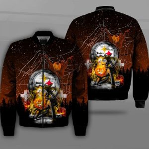 Pittsburgh Steelers 3D Horror Bomber Jacket, NFL Pittsburgh Steelers Apparel, Bomber Jacket for Steelers Fans