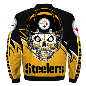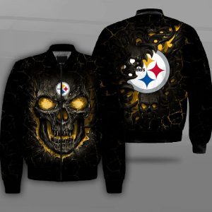 Pittsburgh Steelers 3D Skull Bomber Jacket, NFL Pittsburgh Steelers Apparel, Bomber Jacket for Steelers Fans