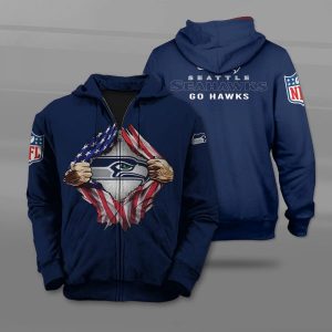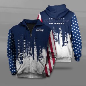 Men / Women Seattle Seahawks 3D Flag Zipper Hoodie, Seattle Seahawks Go Hawks Zipper Hoodie, NFL Seattle Seahawks Apparel