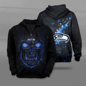 Men / Women Seattle Seahawks 3D Skull Zipper Hoodie, NFL Seattle Seahawks Apparel