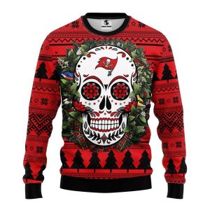 NFL Tampa Bay Buccaneers Skull Flower Ugly Christmas Fleece Sweater