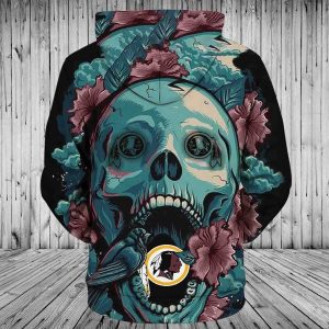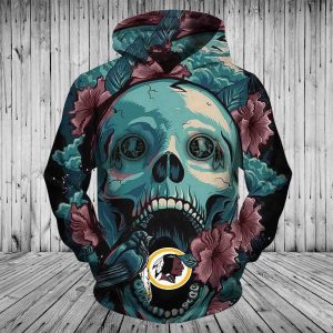 Men / Women Washington Redskins 3D Flower Skull Hoodie, Washington Redskins Hoodie, NFL Washington Redskins Apparel