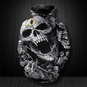 Men / Women Washington Redskins 3D Skull Zipper Hoodie, Washington Redskins Zipper Hoodie, NFL Washington Redskins Apparel